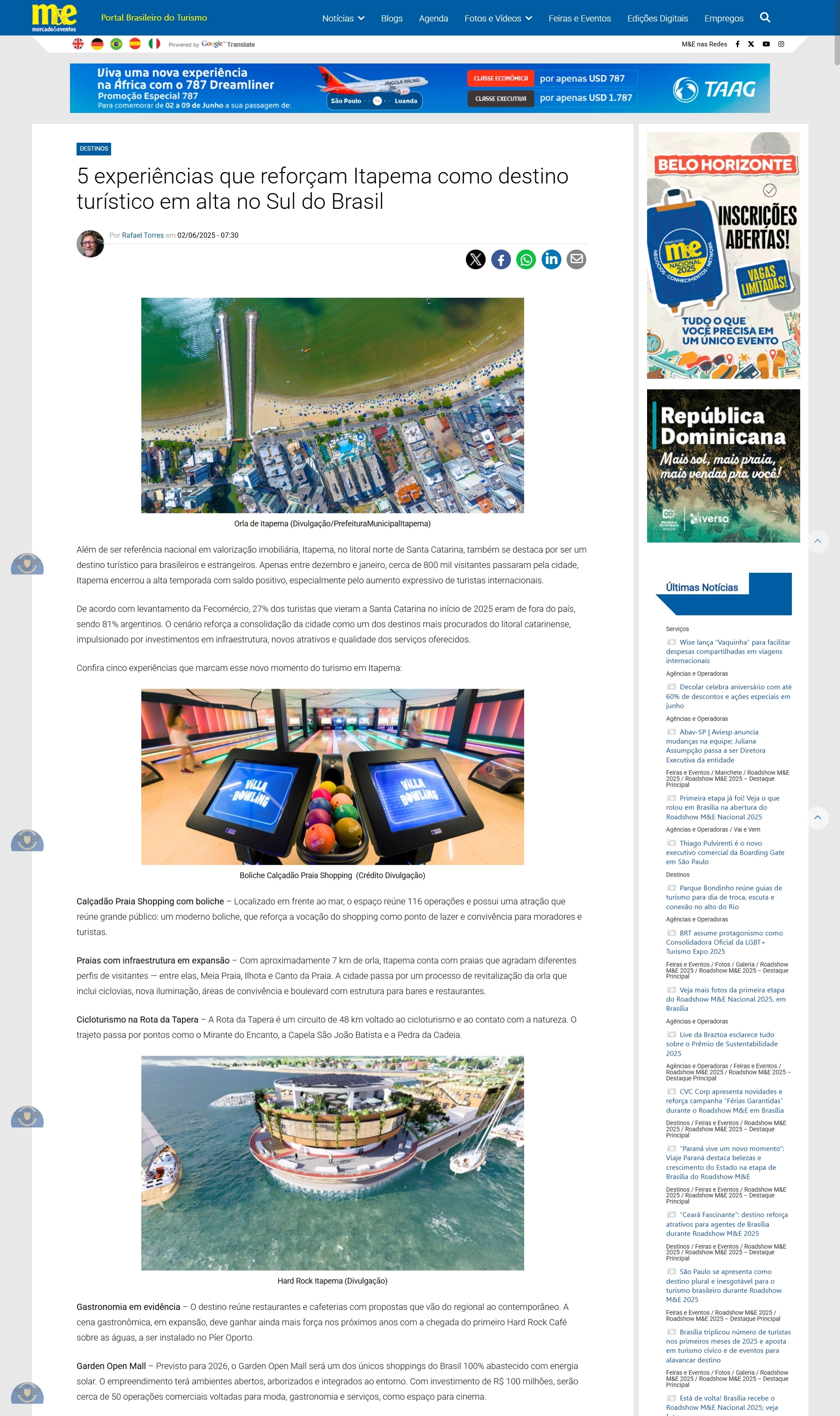 5 experiências que reforçam Itapema como destino turístico em alta no Sul do Brasil - M&E Mercado e