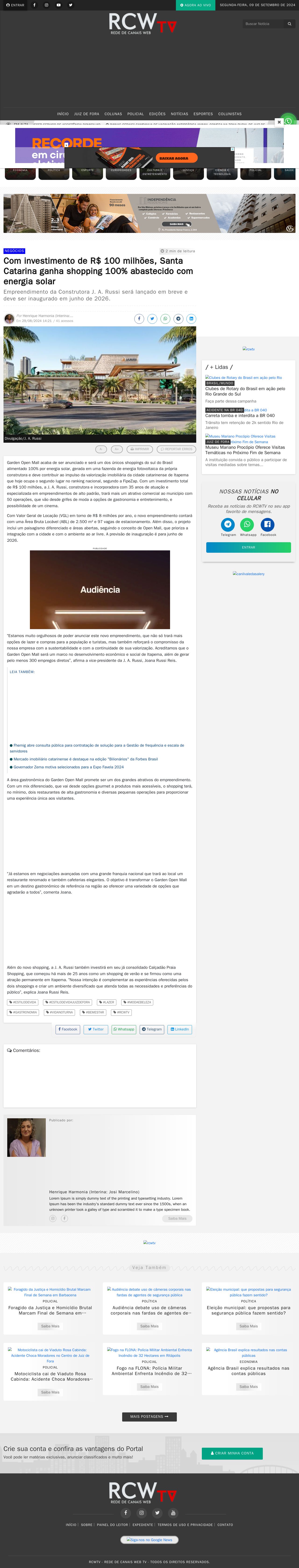 Com investimento de R$ 100 milhões, Santa Catarina ganha shopping 100% abastecido com energia solar - RCWTV
