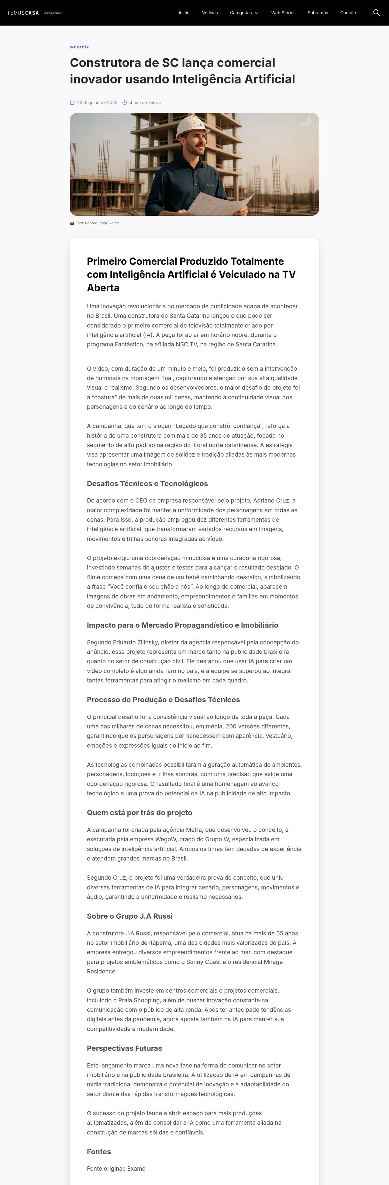 Construtora inova e é pioneira no Brasil a veicular comercial 100% feito em IA