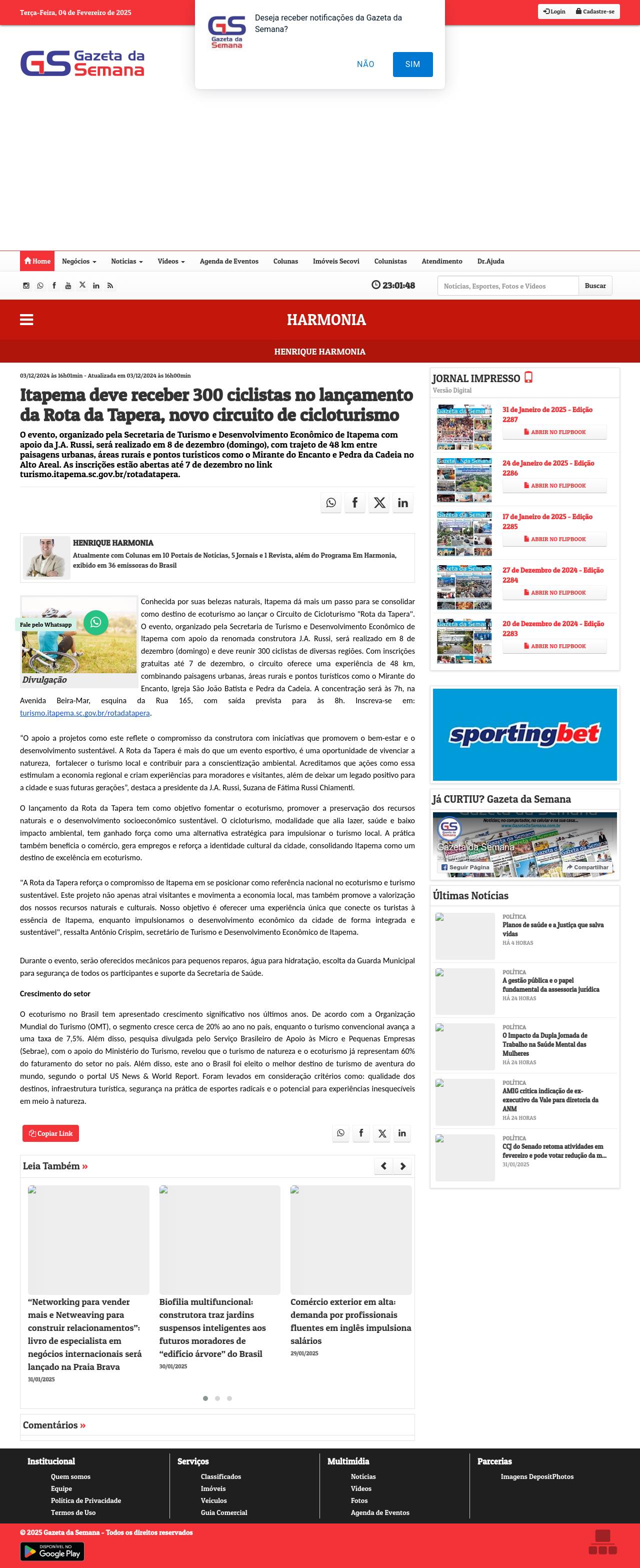 https://gazetadasemana.com.br/coluna/13101/itapema-deve-receber-300-ciclistas-no-lancamento-da-rota-da-tapera-novo-circuito-de-cicloturismo