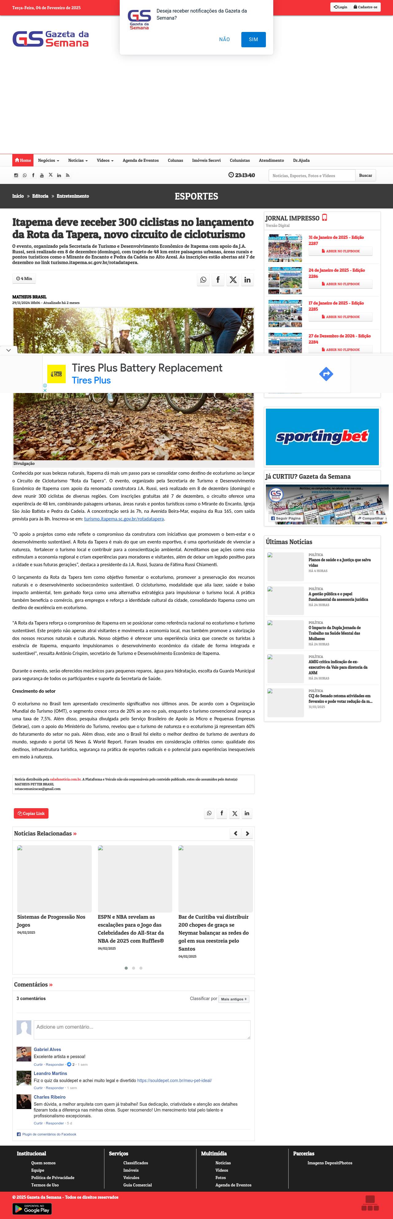 https://gazetadasemana.com.br/noticia/203924/itapema-deve-receber-300-ciclistas-no-lancamento-da-rota-da-tapera-novo-circuito-de-cicloturismo