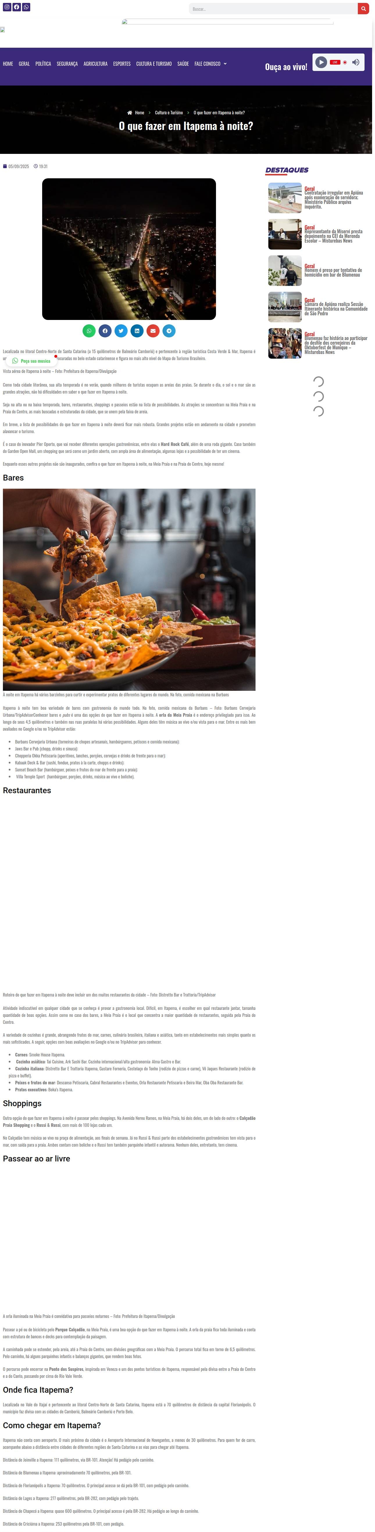 O que fazer em Itapema ŕ noite? - Rádio Trentina 98.3 FM