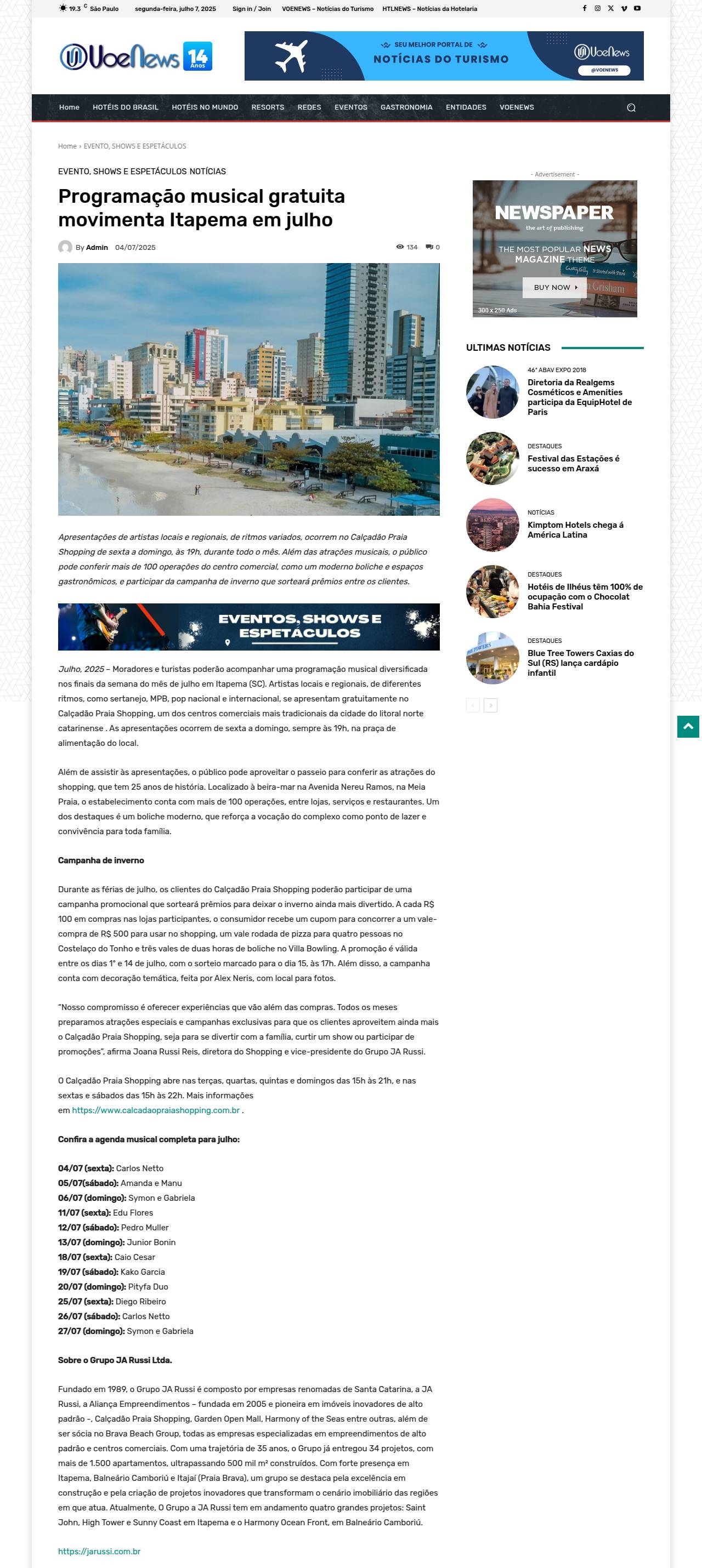 Programação musical gratuita movimenta Itapema em julho VOENEWS - Notícias do Turismo
