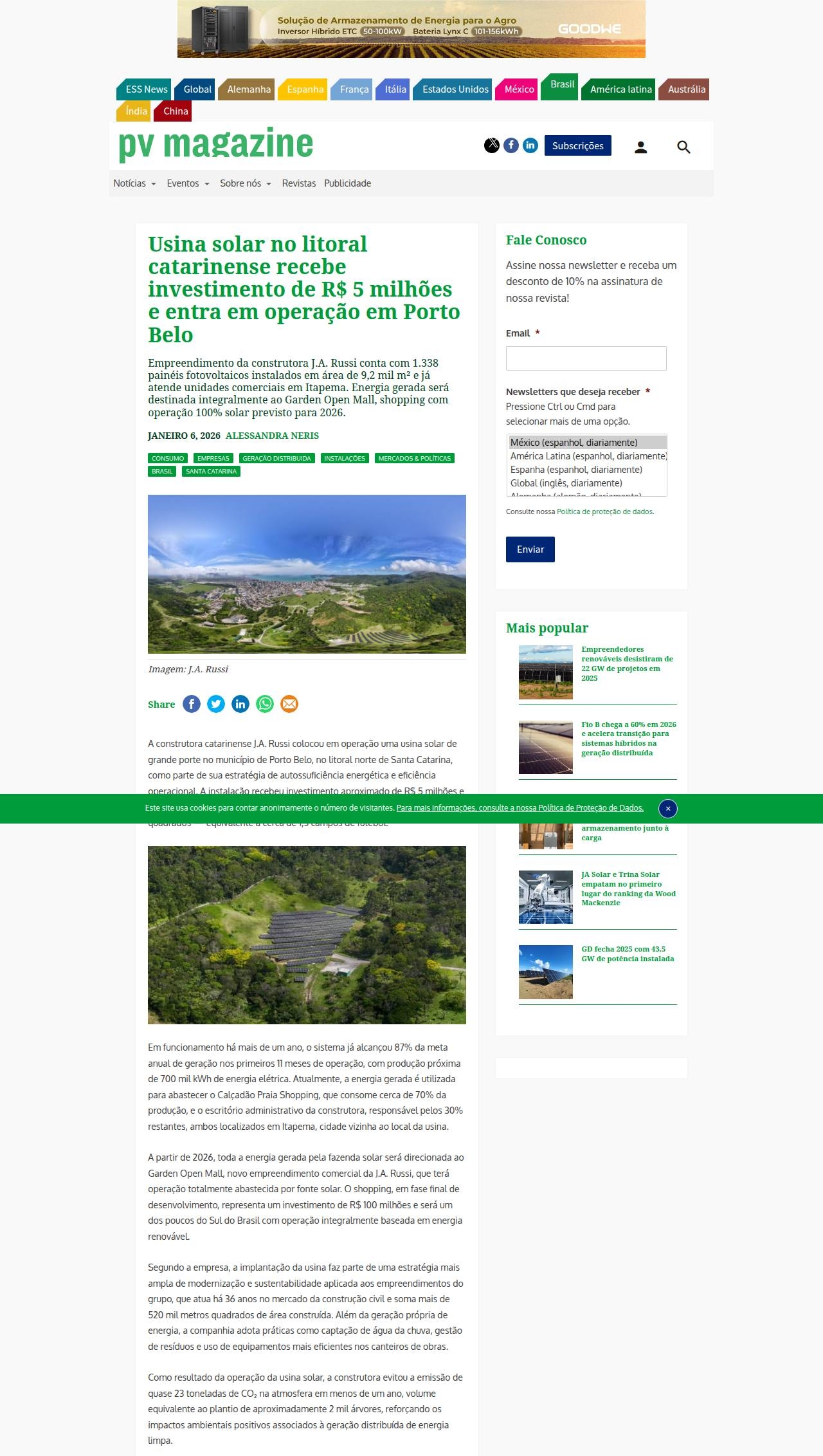 https://www.pv-magazine-brasil.com/2026/01/06/usina-solar-no-litoral-catarinense-recebe-investimento-de-r-5-milhoes-e-entra-em-operacao-em-porto-belo